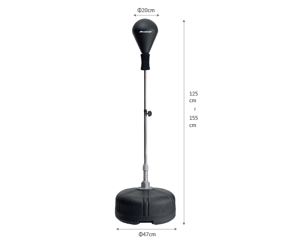 • Adjustable height: 125-156cm • PU punching bag: 20x26cm • HDPE base: Φ47x24cm(H), about 1.8kgs • Base tank with water is about 30kgs • Available color: Red or Black