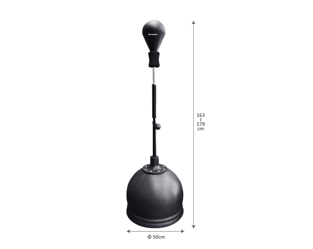 • Total product height: 163-179cm • PU punching ball: Φ20cmx26cm • HDPE base: Φ50cmx50cm(H) • Base tank with water is about 58kgs • Color: Red or Black