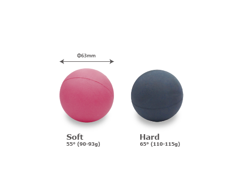 • Material: Rubber • Size: Φ63mm(-1mm) • Hard Ball: Hardness: 65°, Weight: 110-115g, Color: Black • Soft Ball: Hardness: 55°, Weight: 90-93g, Color: Pink