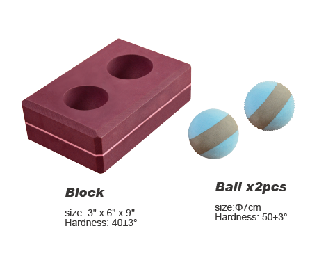 • Material: EVA • EVA ball size: Φ7cm / Hardness: 50±3° • Block color: Red / Pink / Red • EVA ball color: Blue 300U / Light blue • Block size: 3"x6"x9" / Hardness: 40±3°