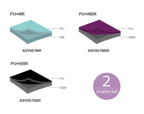 • Material: PU (top) + NR or NBR or SBR (bottom) • Thickness: 3, 4, 5 mm • Size: 24" x 68", 24" x 72"